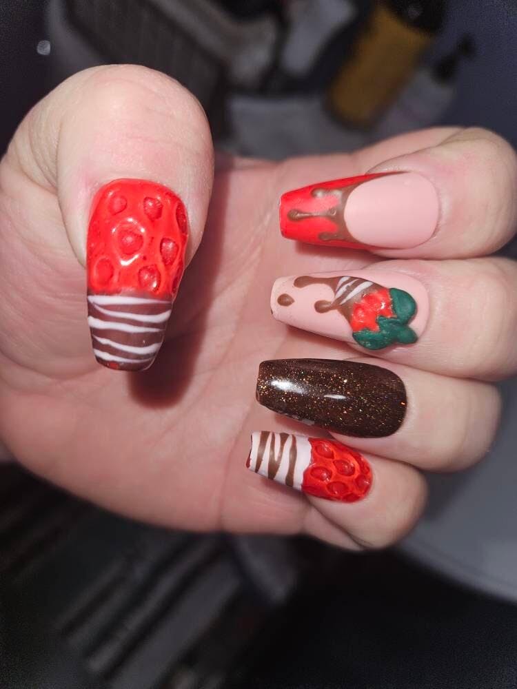 I'm obsessed! These nails are the match for my elf costume. Everybody is asking who did them. Love them! So worth the wait.