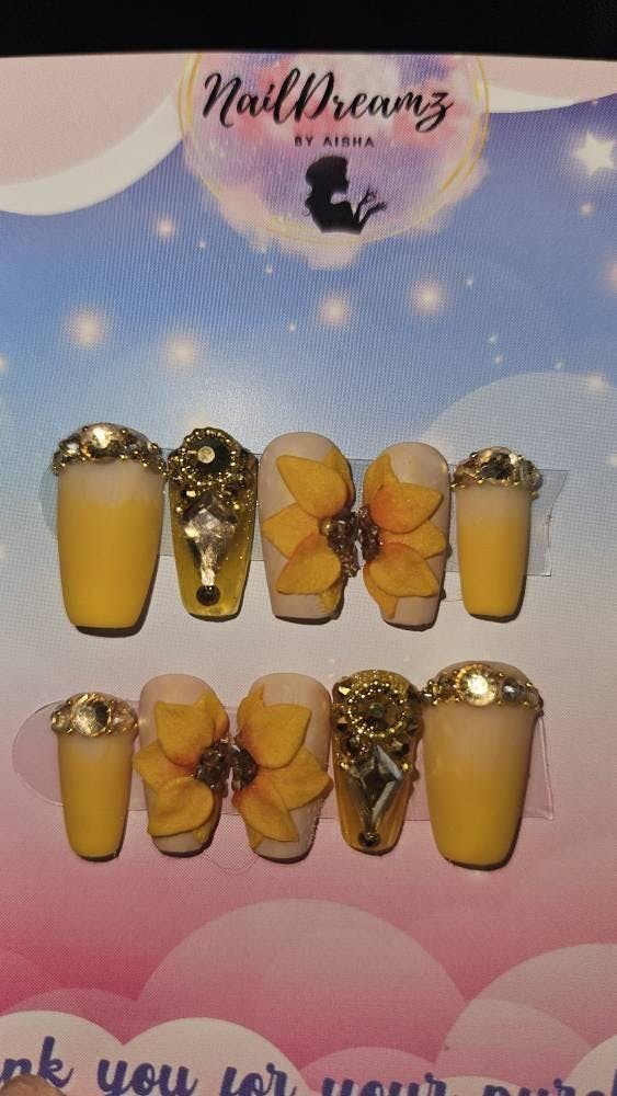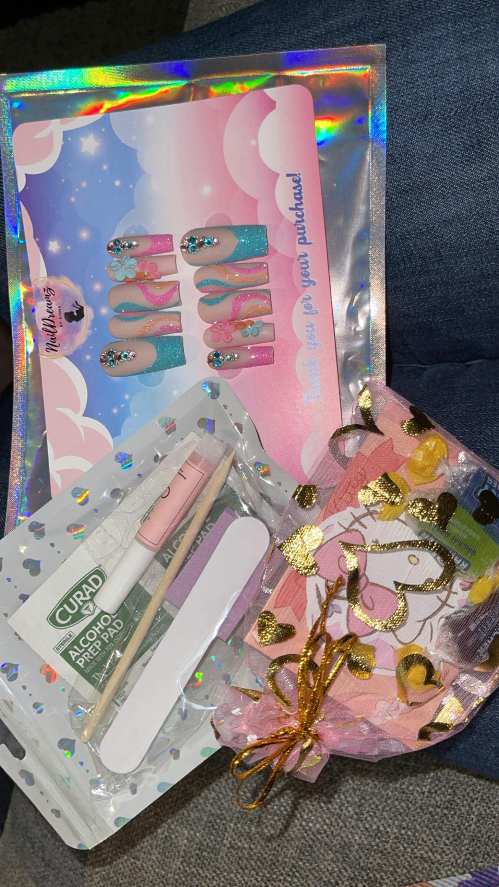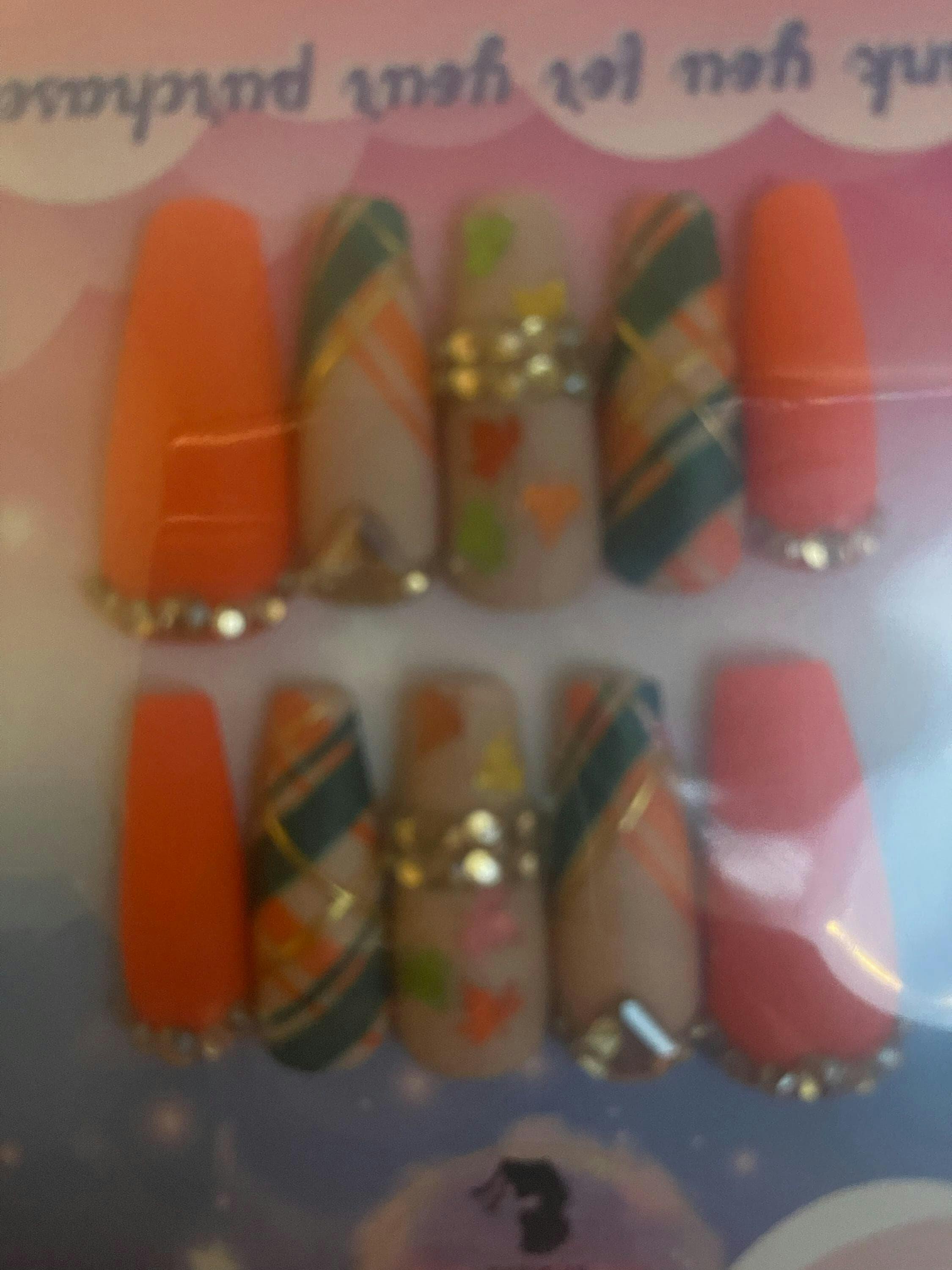 Etsy I am so Happy. I received my nails set today. It’s so beautiful I can’t wait to wear them. I love it. I rate everything five stars. Thank you