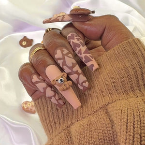 Get ready to fall in love with the Kawaii Bear Cute Press On Nails! These adorable Valentine's nails feature charming bear designs and heart patterns, perfect for adding a touch of sweetness to your look. With a mix of brown and nude tones, these nails are both trendy and cute, making them a must-have for any nail art lover.